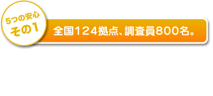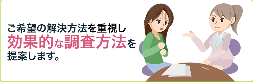 ご相談内容により、最適なプランをご提案いたします。調査内容により異なりますが、最終的な料金がいくらになるかまで安心していただけるよう、無料にてお見積もりを行います。当社独自の全国ネットワークとコストパフォーマンスを最大限に活かし、低価格を実現致しました。