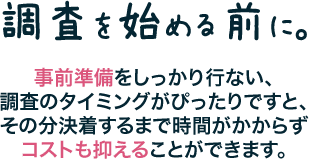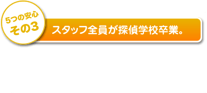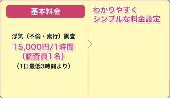 ※見積もり時は安い金額設定であっても、調査終了後に多額の経費分を請求されるパターンをよく聞きますので、どうぞ慎重にお選びください。弊社は経費分全て込みの明確なお見積もりを心がけております。」